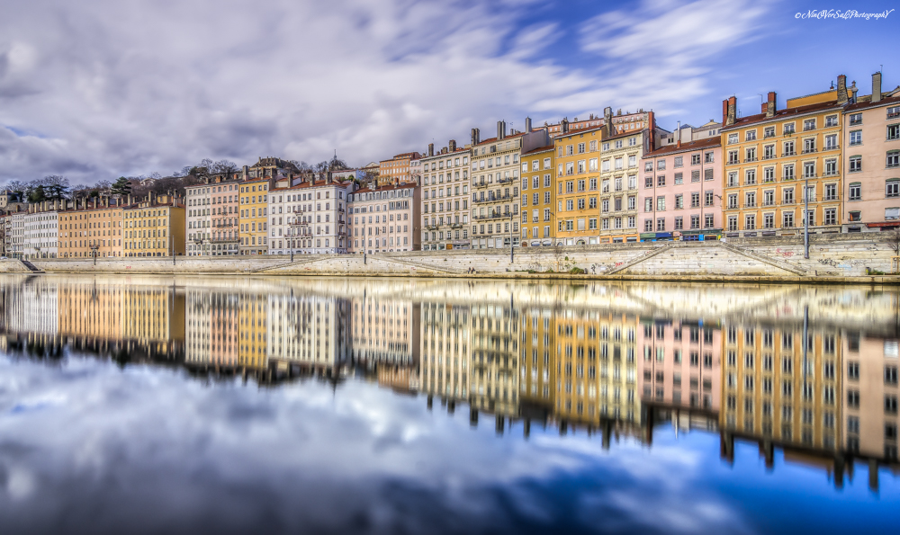 Había pedazos de un paseo al borde de un río que cruzaba una gran ciudad montañosa.
