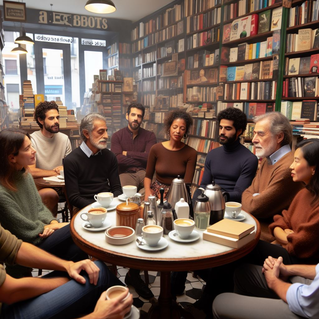 En un acogedor café literario en el corazón de Madrid, se reúnen algunos de los escritores más influyentes de nuestra época. Entre tazas de café humeante y estanterías repletas de libros, Paul Auster, Javier Marías, Almudena Grandes, Enrique Vila-Matas, Isaac Rosa, Marta Sanz, Virginie Despentes y Tonino Benacquista se sientan alrededor de una mesa redonda. La conversación fluye naturalmente, abordando temas profundos sobre la vida, la escritura y la lectura. Cada autor, con su estilo único, aporta reflexiones que invitan a la introspección y al debate.