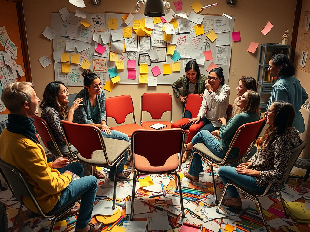 Tenía razón: lo primero que hicieron fue reacomodar las sillas en círculo. Después, votaron el nombre del subgrupo encargado de documentar el proceso de reacomodo.